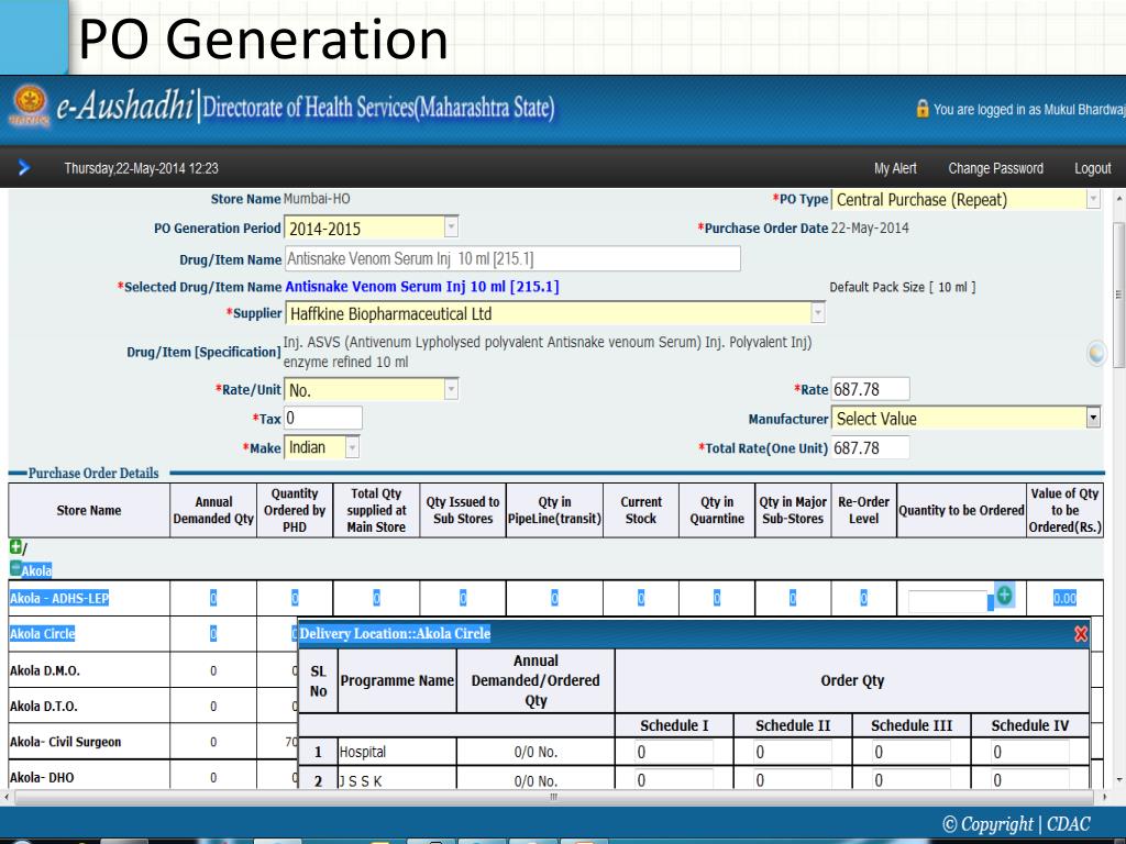 In year 2013-2014, for 479 medicines, total 934 orders are given. Out of 934 orders supply for 750 orders are completed and supply for 184 is in process • Demand for Medicine and Consumables • As per DHS letter dated 9-Apr-2014, guidelines were given to each districts to send annual demand for 2014-2015 in given excel format. • Demand for medicines is taken for the period of 1.10.2014 to 31.10.2015 • Districts established committee to finalize the demand. • Circlewise meeting with all pharmacy officer of CS and DHO & ADHS of respective circles and rationalized the demand of each medicine.