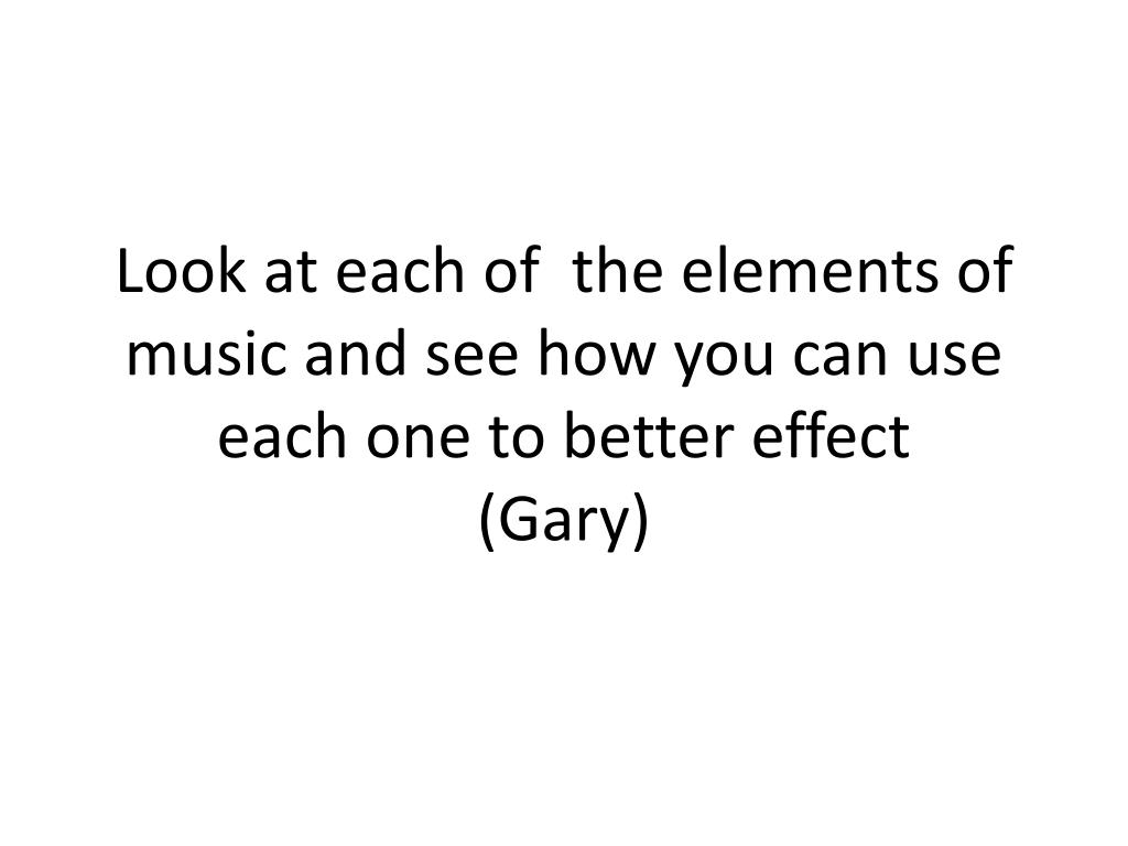 Look at each of the elements of music and see how you can use each one to better effect(Gary)