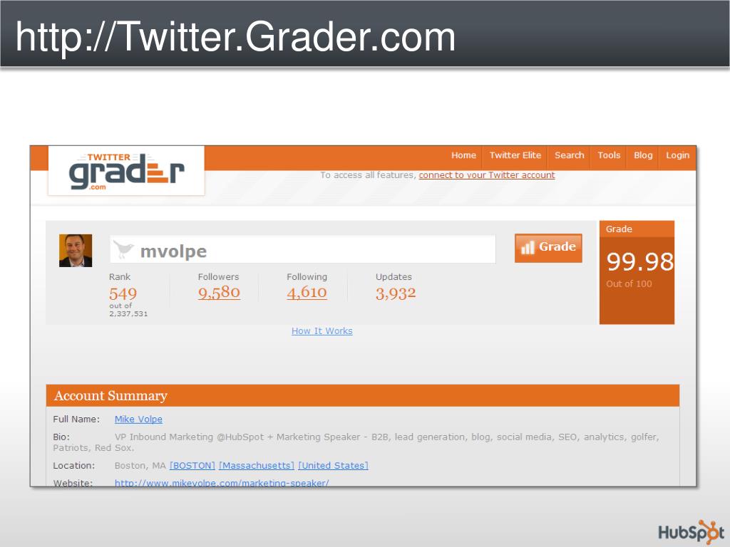 Biggest Blogging Mistake A “free” URL from Blogspot or Typepad • HubSpot.blogspot.com – NO! • HubSpot.typepad.com – NO! • Blog.HubSpot.com – Yes • HubSpot.com/Blog – Yes • SmallBusinessHub.com – Yes