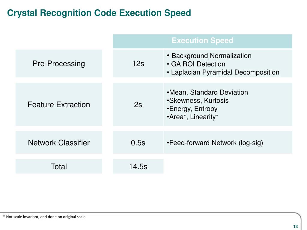 Crystal Recognition Code Execution Speed * Not scale invariant, and done on original scale