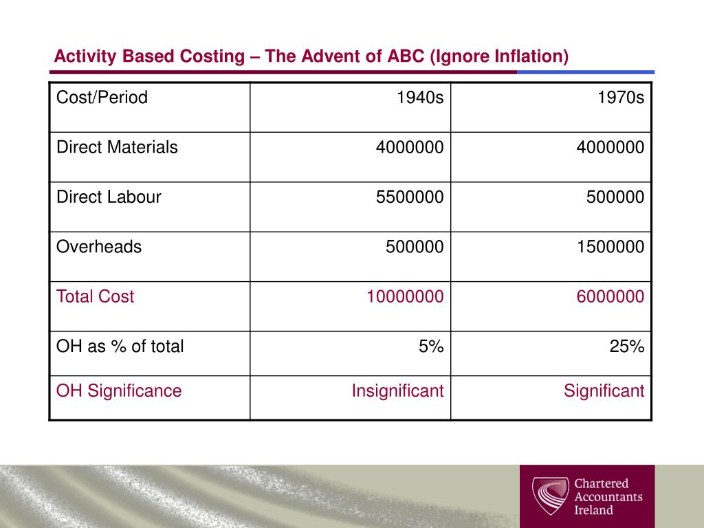 Activity Based Costing – The Advent of ABC (Ignore Inflation)