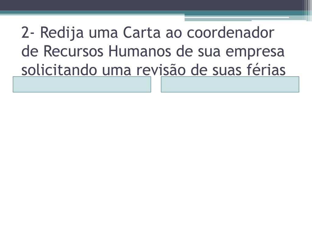 2- Redija uma Carta ao coordenador de Recursos Humanos de sua empresa solicitando uma revisão de suas férias