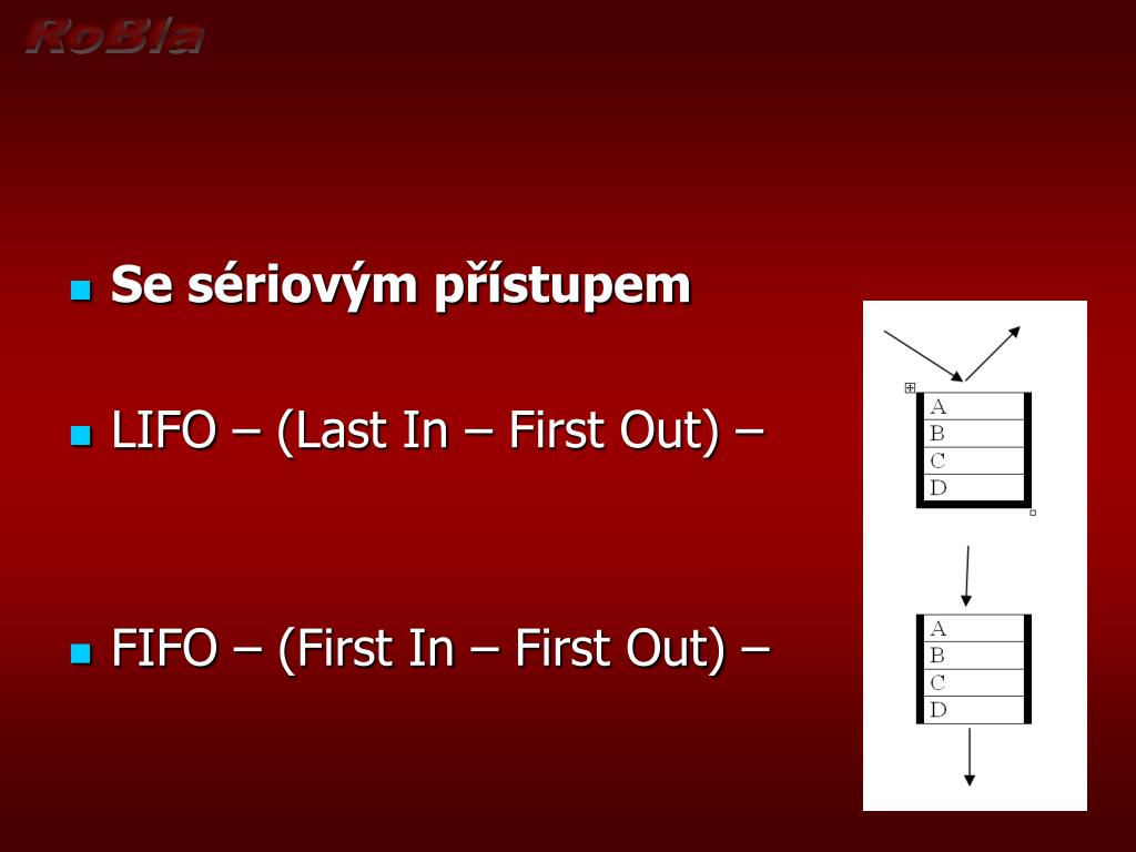 Se sériovým přístupem • LIFO – (Last In – First Out) – • FIFO – (First In – First Out) –