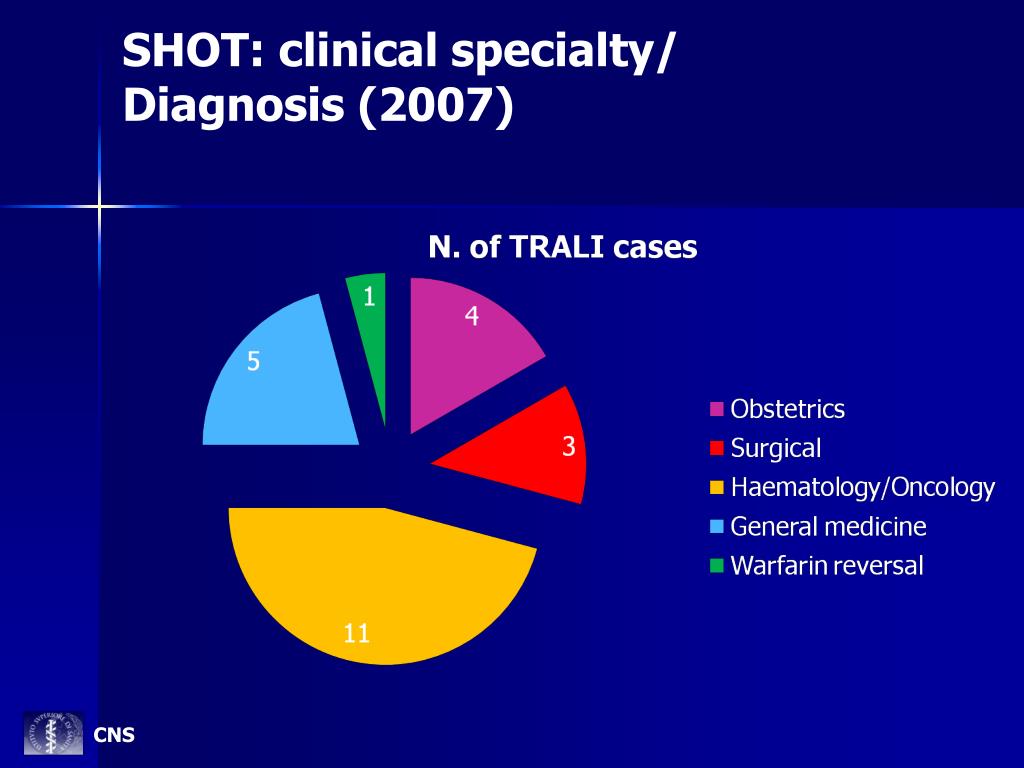 CNS SHOT: cumulative cases of TRALI (2003-2007)