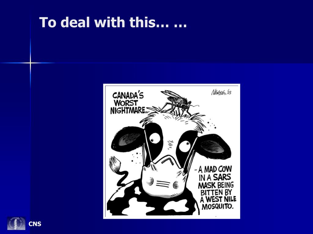 CNS “Il Principio della Precauzione” • EC Court ruling, May 1998 on EC decision to ban export of UK beef: • “Where there is uncertainty as to the existence or extent of risks to human health .… institutions may take protective measures without having to wait until the reality and seriousness of those risks become fully apparent” • Krever Commission of Inquiry on the Blood System in Canada, Recommendation 2(e): • “Preventive action should be taken when there is evidence that a potentially disease-causing agent is or may be blood borne, even when there is no evidence that recipients have been affected. If harm can occur, it should be assumed that it will occur. If there are no measures that will entirely prevent harm, measures that may only partially prevent transmission should be taken.”