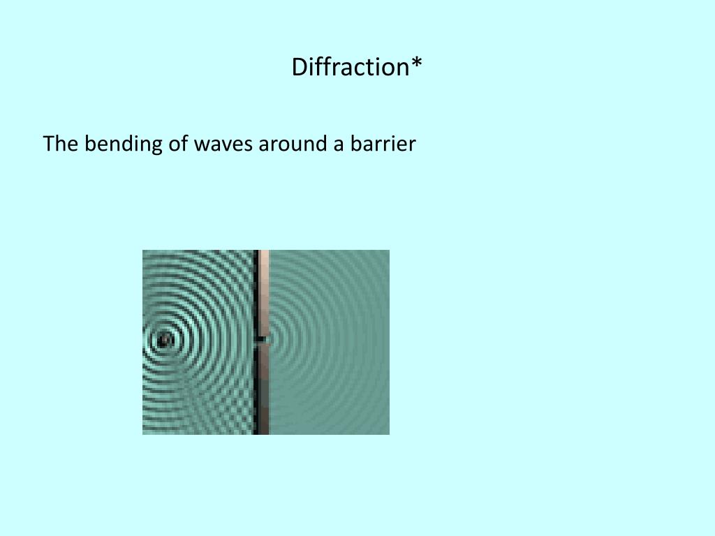 Diffraction* The bending of waves around a barrier