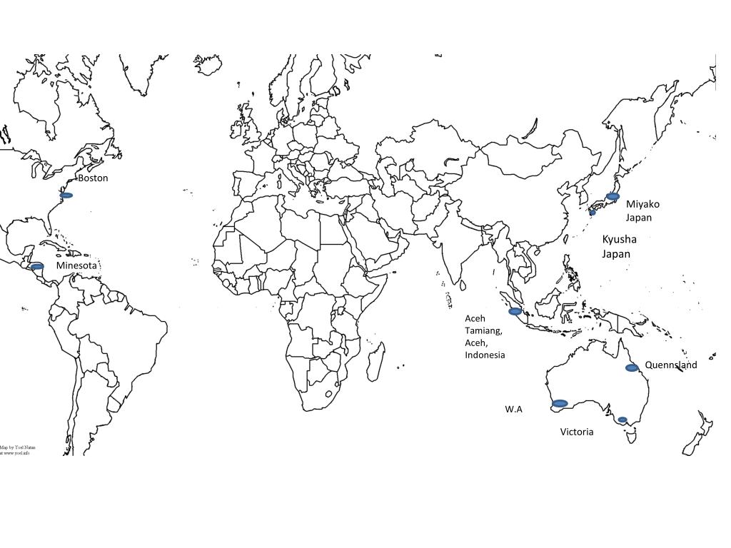 Boston Miyako Japan Kyusha Japan Minesota Aceh Tamiang, Aceh, Indonesia Quennsland W.A Victoria