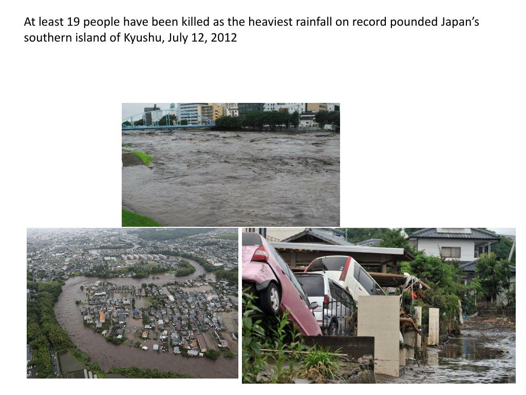 At least 19 people have been killed as the heaviest rainfall on record pounded Japan’s southern island of Kyushu, July 12, 2012