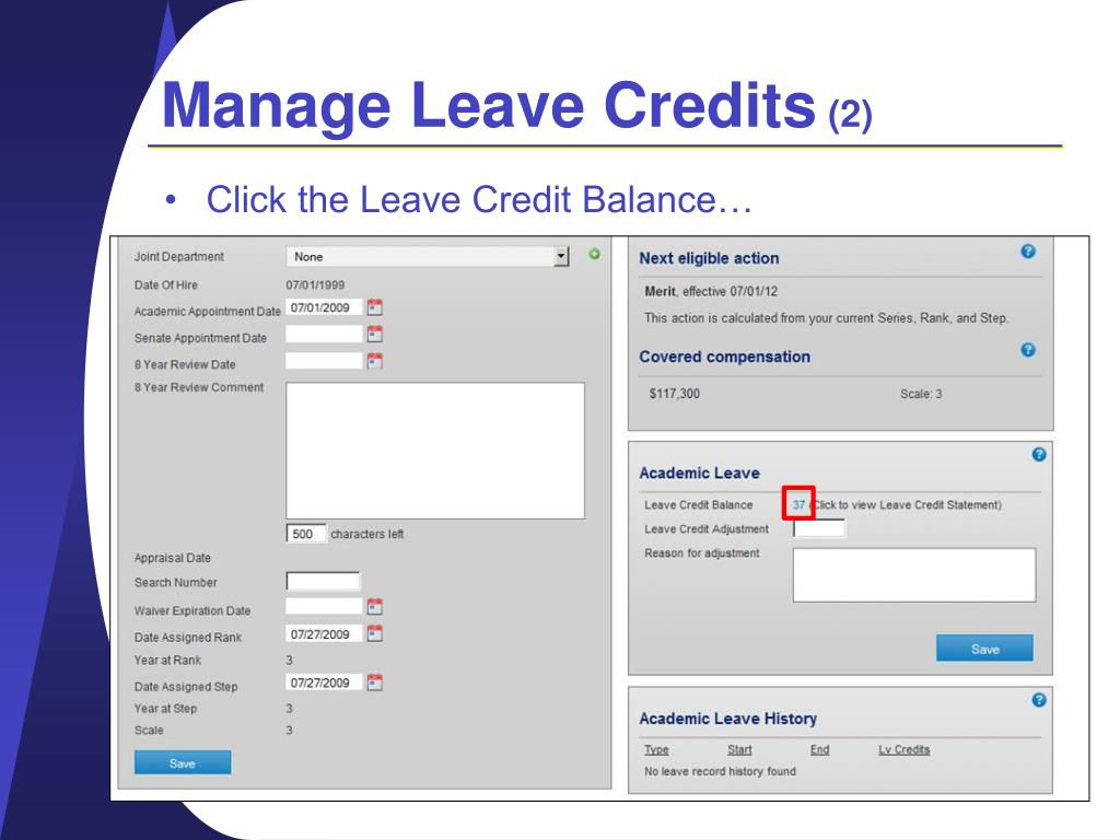 Manage Leave Credits (2) • Click the Leave Credit Balance…