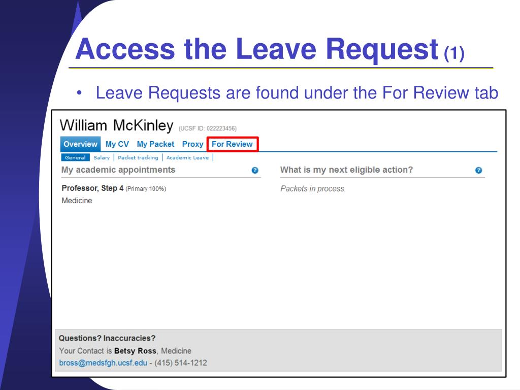 Access the Leave Request (1) • Leave Requests are found under the For Review tab