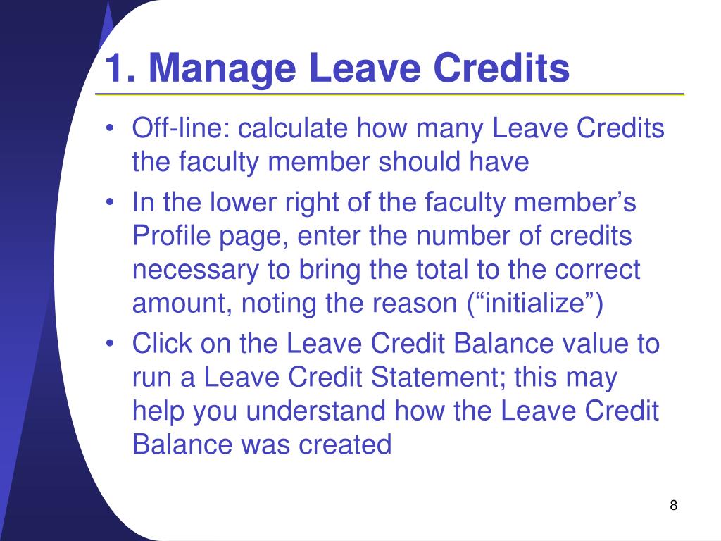 Manage Leave Credits (1) • Enter credits to bring the total to the correct amount