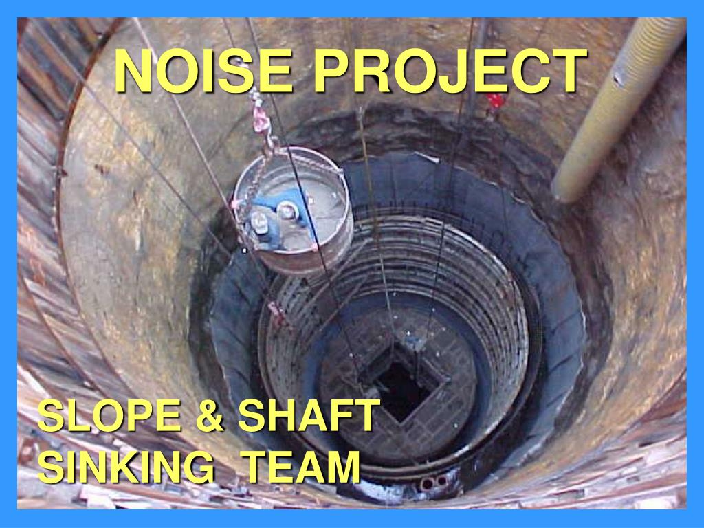 NOISE PROJECT. SLOPE & SHAFT SINKING TEAM . Shafts Conventional Drill, Blast, Muck or Clam-Shell Drill - Either Raise-Bore or Blind-Drill. Slopes Conventional Drill, Blast , Muck (Air or Diesel) Continuous Miner Cut. PROJECT TYPES.