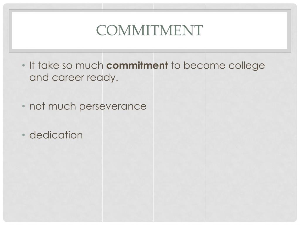 commitment • It take so much commitment to become college and career ready. • not much perseverance • dedication