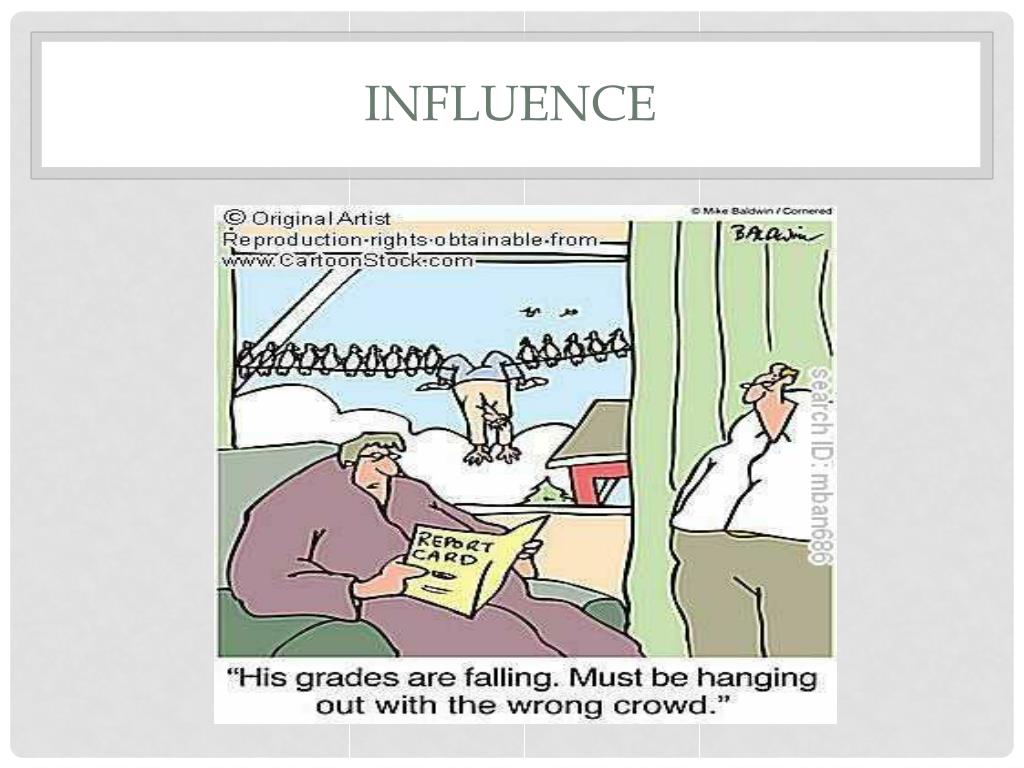 influence • All the students in sixth grade have had a great influence on Ms. Hicks and Mrs. Muir to make the students the best they can be. • something that has an effect on a person • something that does not have an effect on a person • something that has an effect on a person