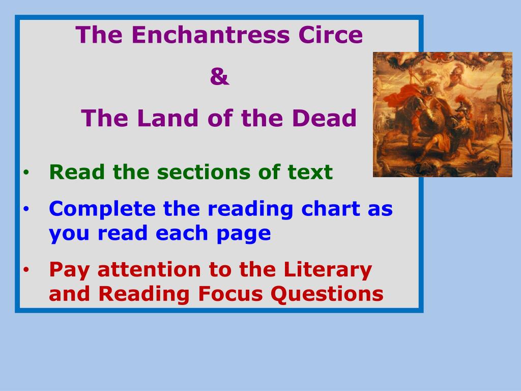 The Enchantress Circe • & • The Land of the Dead • Read the sections of text • Complete the reading chart as you read each page • Pay attention to the Literary and Reading Focus Questions