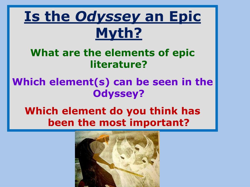 Is the Odyssey an Epic Myth? What are the elements of epic literature? Which element(s) can be seen in the Odyssey? Which element do you think has been the most important?