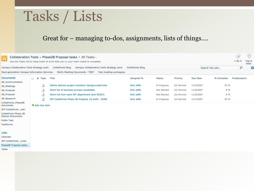 Tasks / Lists Great for – managing to-dos, assignments, lists of things….