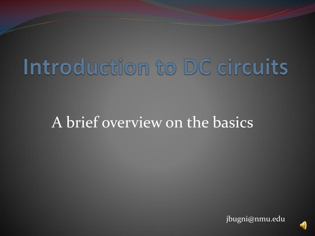 Introduction to DC circuits A brief overview on the basics jbugni@nmu.edu