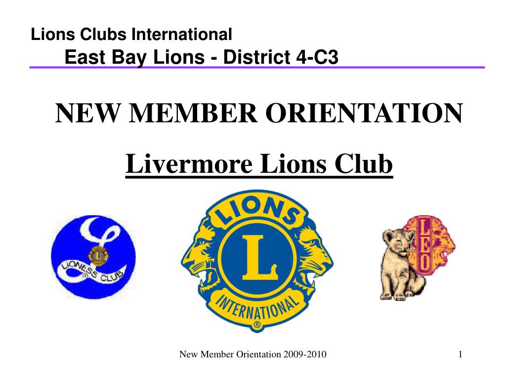 Lions Clubs International. East Bay Lions - District 4-C3. NEW MEMBER ORIENTATION Livermore Lions Club. Lions Clubs International . Session A: History & Structure of Lions Clubs International Session B: Structure of Multiple District 4 & District 4-C3 Session C: