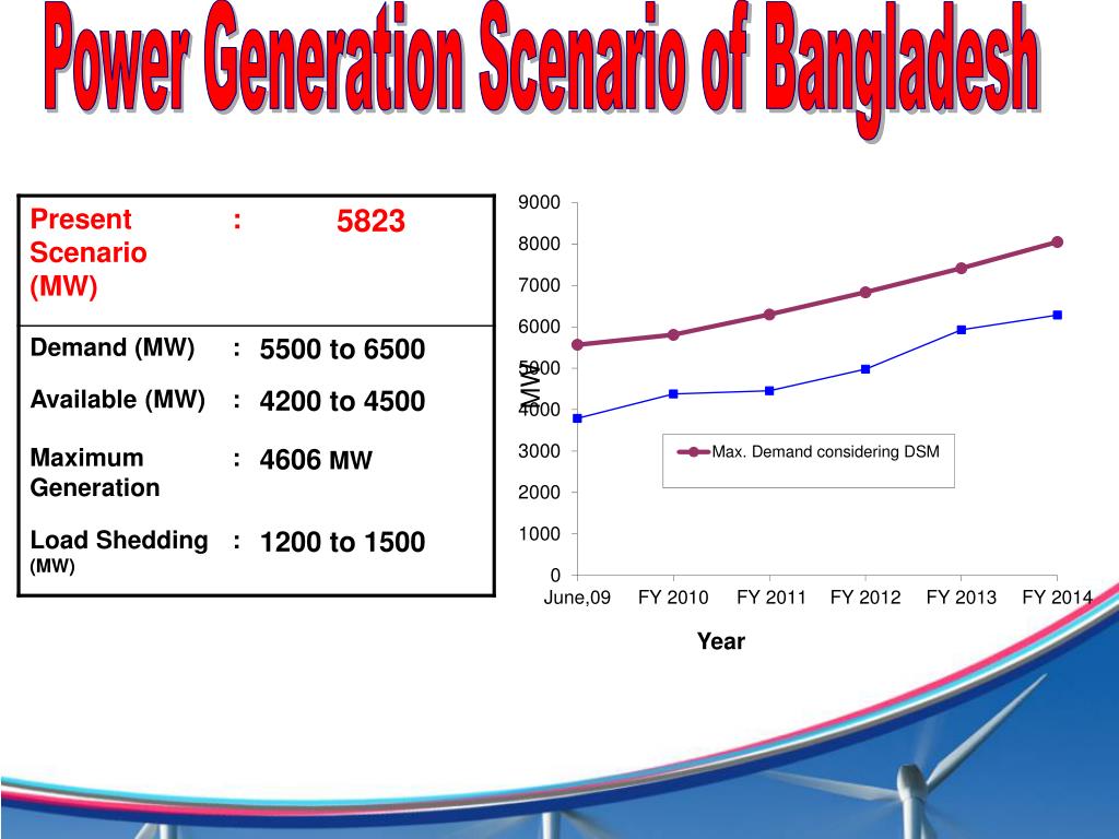 Some Key Statistical Data of Bangladesh • Total Population : 140 Million (170 Million Unofficially) • Total Area : 147,570 square kilometer • Access to Electricity : 47 % (FY 2010) • Electricity Growth : 7.0 % in 2010 • Total Consumer : 11 Million (FY 2010) • Transmission Line : 8000 km • Distribution Line : 2,56,000 km • Distribution Loss : 12 to 15 % • Per Capita Generation : 200 kWh/yr (FY 2010)