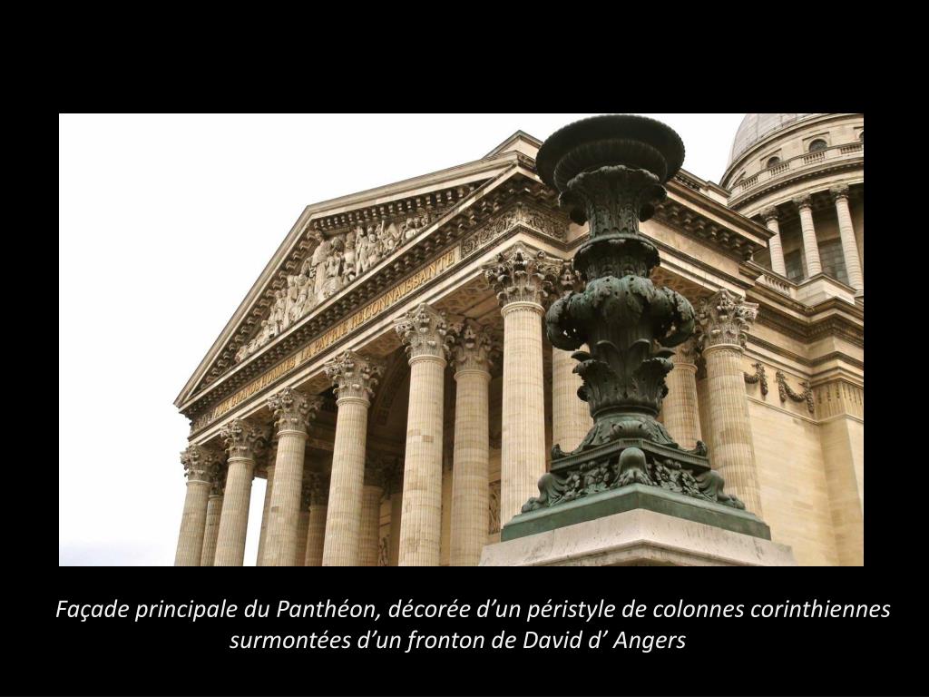 Façade principale du Panthéon, décorée d’un péristyle de colonnes corinthiennes surmontées d’un fronton de David d’ Angers
