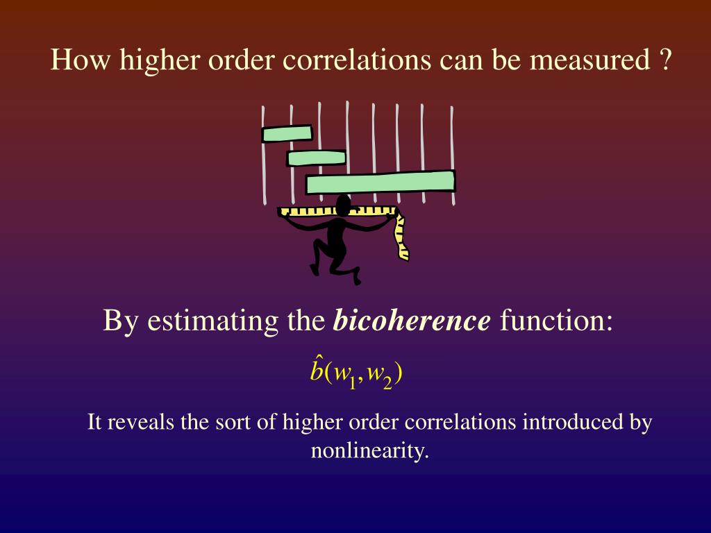 How higher order correlations can be measured ? By estimating the bicoherence function: It reveals the sort of higher order correlations introduced by nonlinearity.