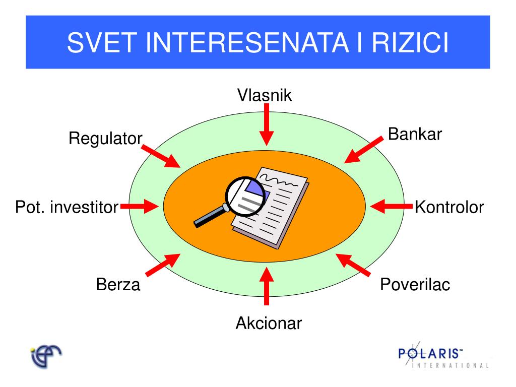 SVET INTERESENATA I RIZICI Vlasnik Bankar Regulator Pot. investitor Kontrolor Berza Poverilac Akcionar