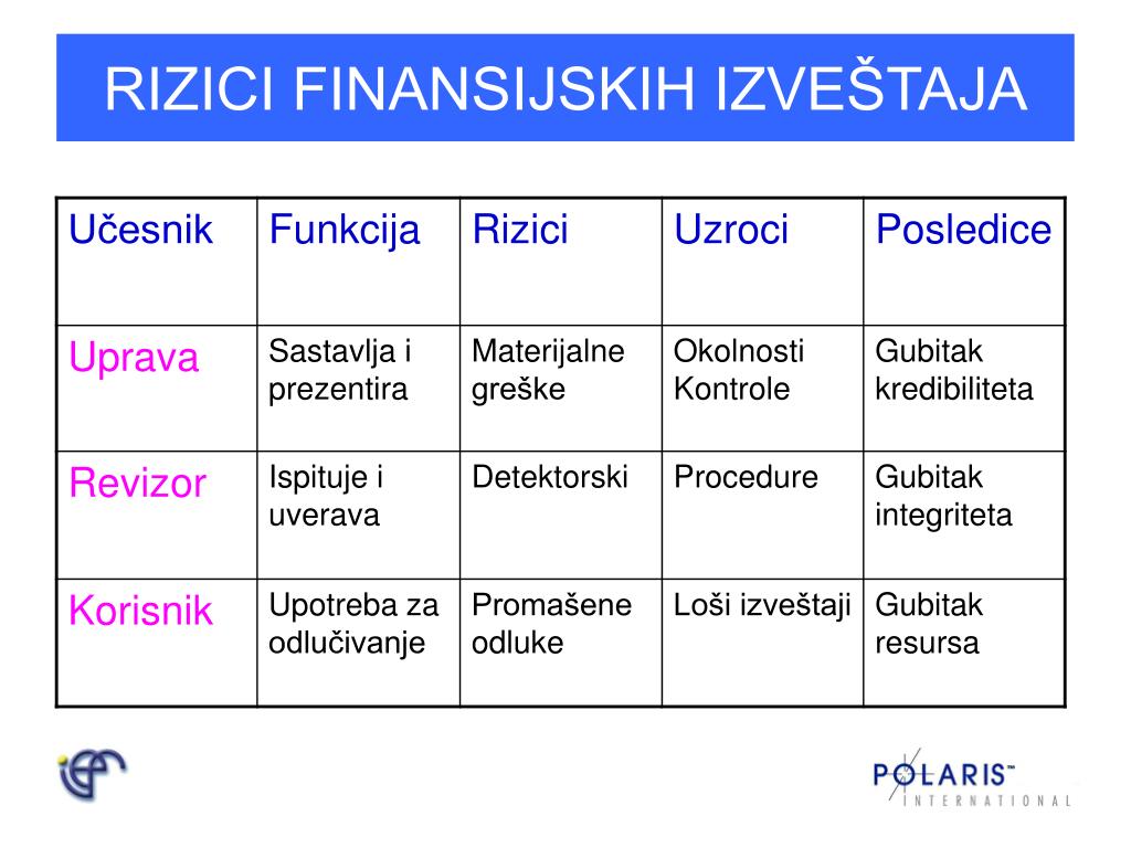 RIZICI FINANSIJSKIH IZVEŠTAJA MOGUĆNOST DA SE U JAVNOJ UPOTREBI POJAVE FINANSIJSKI IZVEŠTAJI SAMATERIJALNO ZNAČAJNIM POGREŠNIM ISKAZIMA