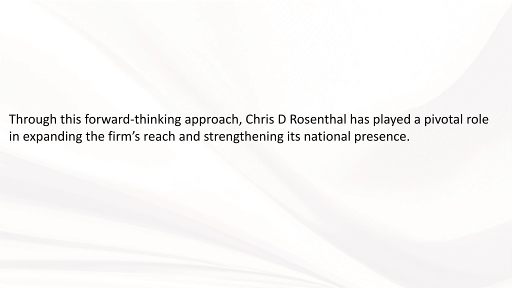 Through this forward-thinking approach, Chris D Rosenthal has played a pivotal role in expanding the firm’s reach and strengthening its national presence.