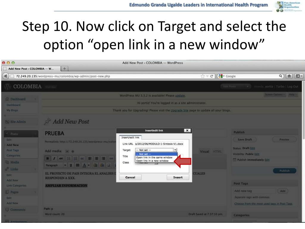 Step 12. Update the Post or Page and visit the site LUEGO ACA PRIMERO AQUI
