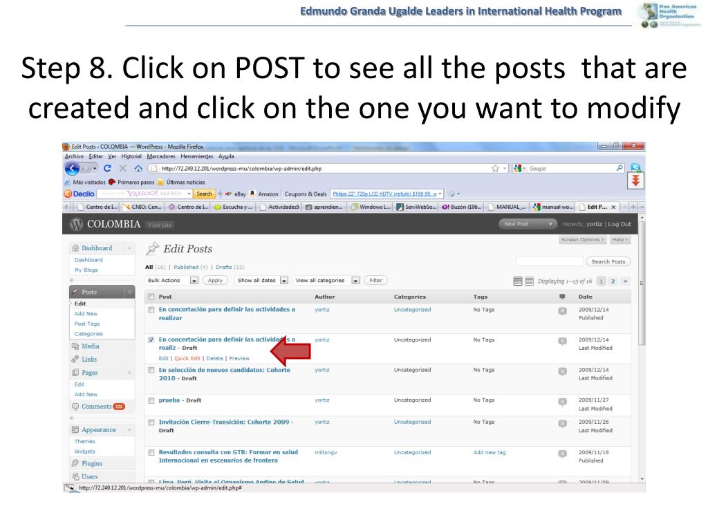 Step 8. Click on POST to see all the posts that are created and click on the one you want to modify