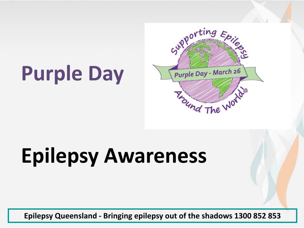 Purple Day Epilepsy Awareness. Epilepsy Queensland - Bringing epilepsy out of the shadows 1300 852 853. What epilepsy is? . World’s most serious brain disorder Tendency to recurring seizures Seizures are all different Everybody’s epilepsy is different.