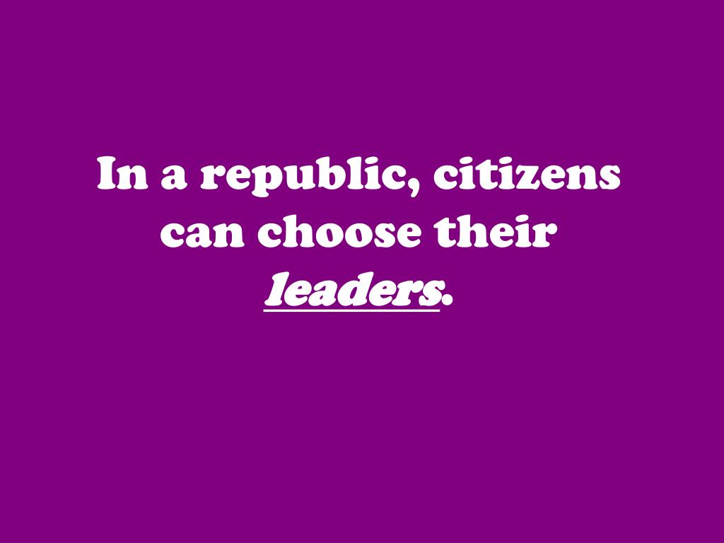 Roman Government. Republican Form of Government. The Roman government was a republic. In a republic, citizens can choose their leaders . . The republic was established in 509 B.C. and lasted nearly 500 years.