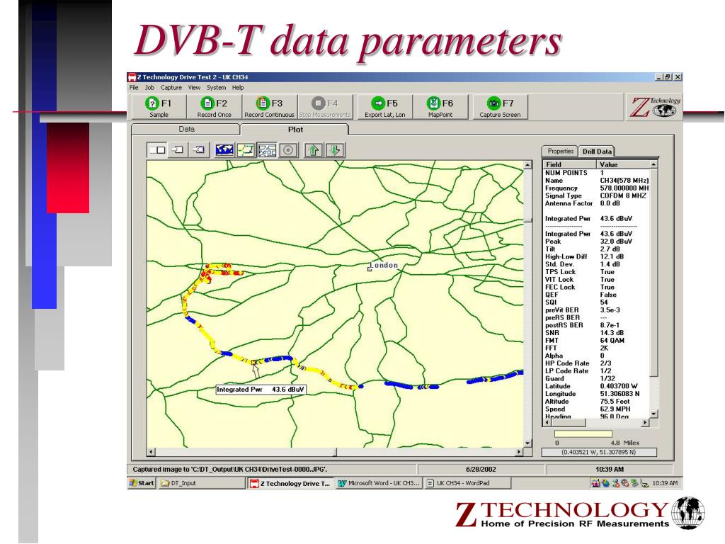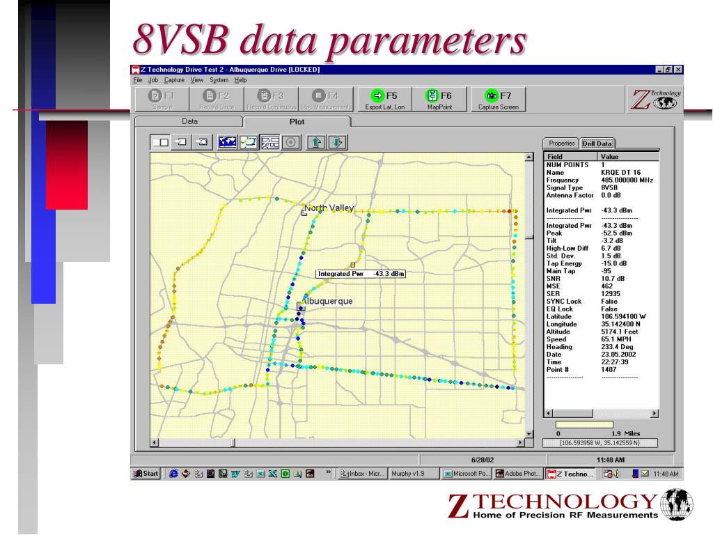 Automatic data recording • Analog: records all setups, time, location, direction of travel, peak power, antenna factors, frequencies, etc. • Digital: adds wideband parameters; integrated power, etc. • DTV systems add data from the digital decoder; sync/eq locks, tap values, etc. • Clear text data files are easy to read and export to other applications