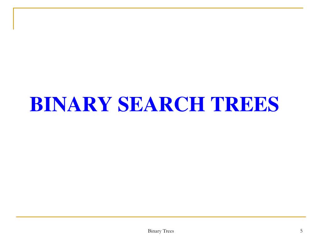 Ordered Dictionaries • Keys are assumed to come from a total order. • New operations: • closestBefore(k) • closestAfter(k) Binary Trees