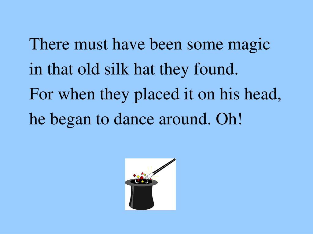 There must have been some magic in that old silk hat they found. For when they placed it on his head, he began to dance around. Oh!