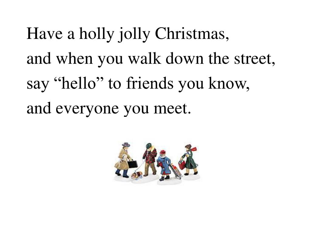 Have a holly jolly Christmas, and when you walk down the street, say “hello” to friends you know, and everyone you meet.