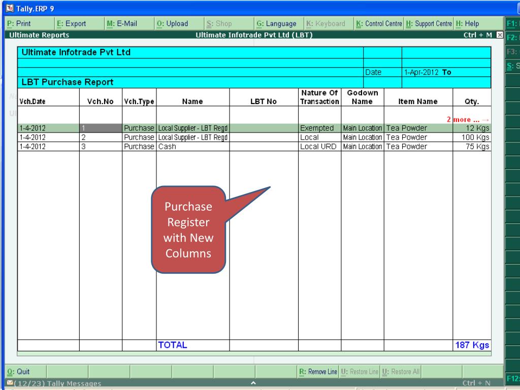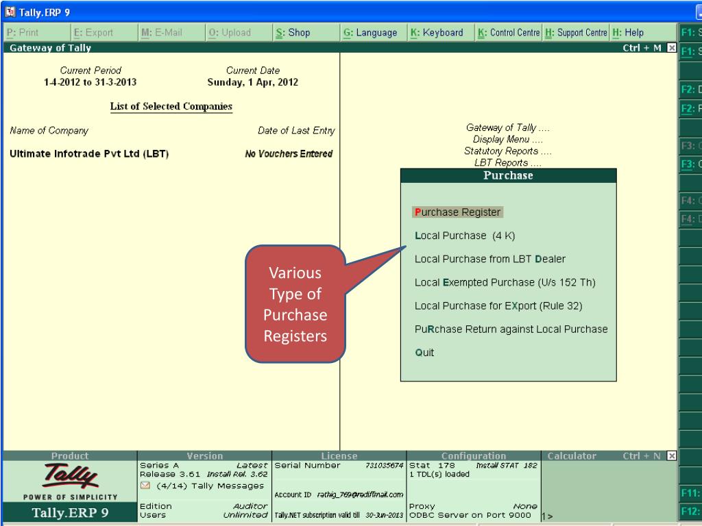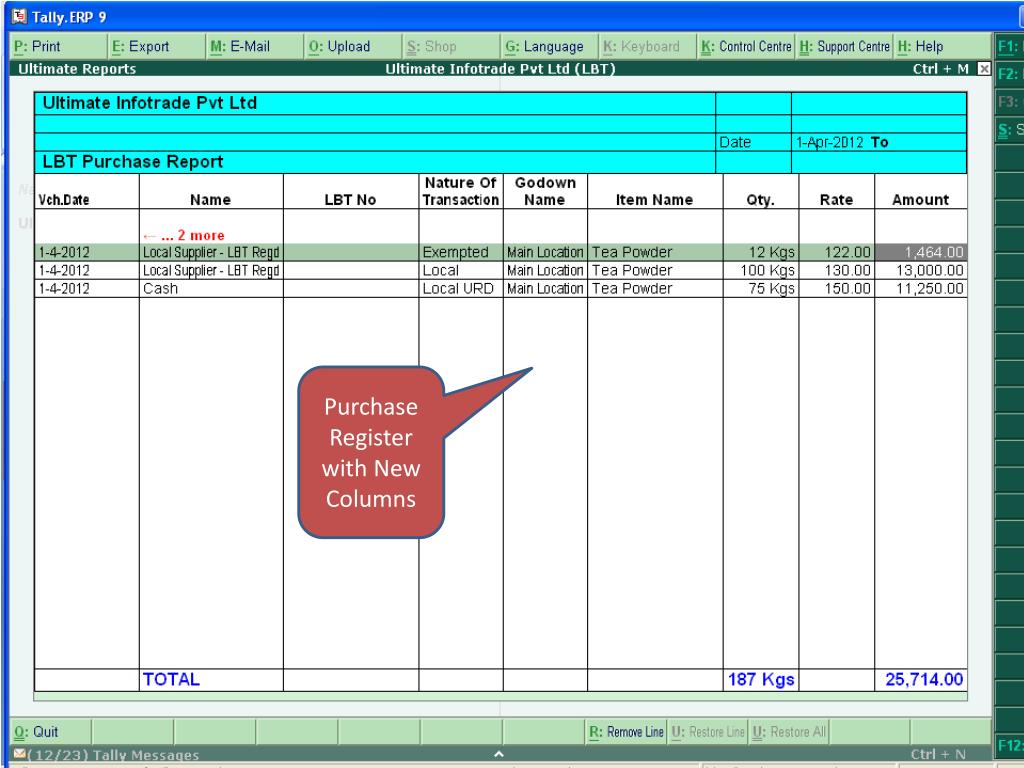 New LBT Option Added. Company Details. Select. For Party. Party LBT No. Details for Godown. Purchase Transaction Type. LBT Declaration for Invoice. LBT Registration to Print. LBT Declaration. Report Menu. Reports Required for LBT Computation. Computation.