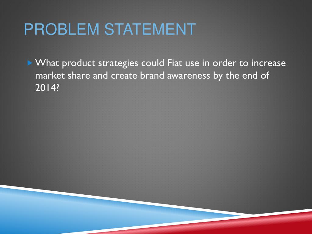 Problem Statement • What product strategies could Fiat use in order to increase market share and create brand awareness by the end of 2014?