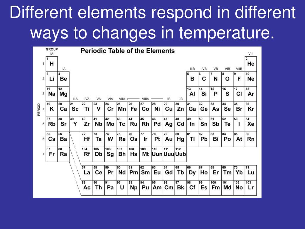Different elements respond in different ways to changes in temperature.