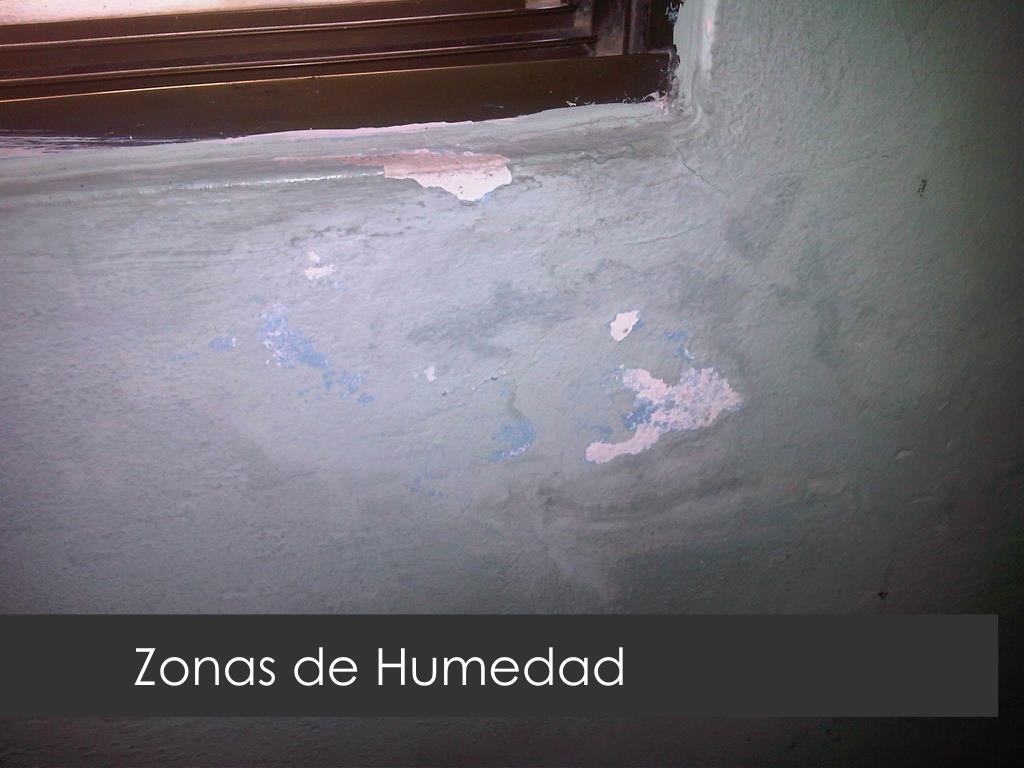 Humedad Las diferentes fuentes potenciales de humedad en los muros son las siguientes : Las subidas capilares Las infiltraciones Las fugas o penetraciones accidentalesLa condensaciónLas lluvias que choca contra las paredes Humedad de construcción Humedad de los muros enterrados Sales higroscópicas Concecuencias: Deterioro de su patrimonio interior y exterior: SALITRE, MOHO, CONDENSACIÓN, MANCHAS, FISURAS, MUSGO, OLORES, DESPEGUES. Perjudica su salud: alergia a los ácaros, asma.