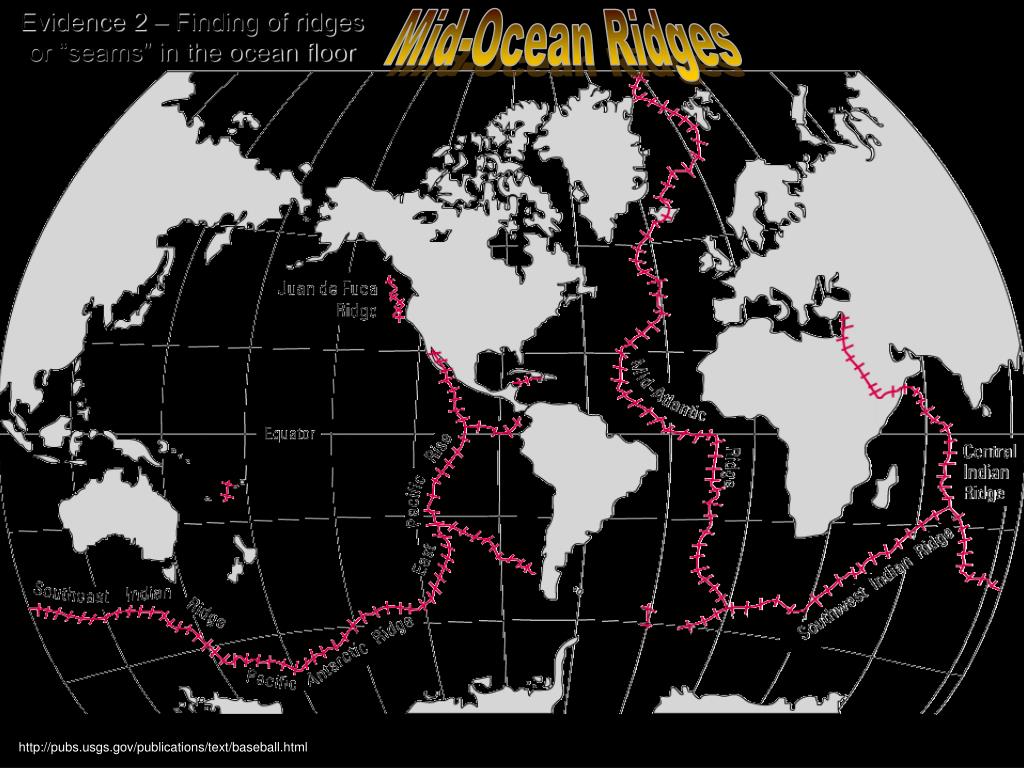 Evidence 2 – Finding of ridges or “seams” in the ocean floor Mid-Ocean Ridges http://pubs.usgs.gov/publications/text/baseball.html