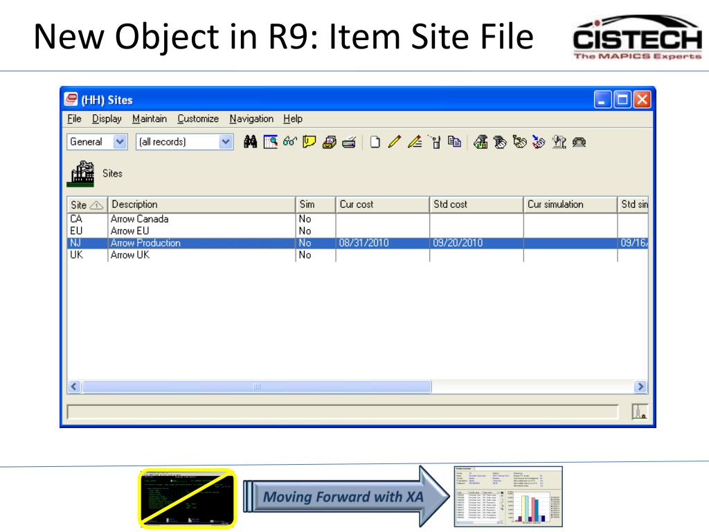 Moving Forward with XA . Sites Enterprise Product Data Management David Kemp david.kemp@cistech.net. What is a Site?. A high level segregation object in MAPICS Enables grouping of Item Revisions that are not available to all departments or locations