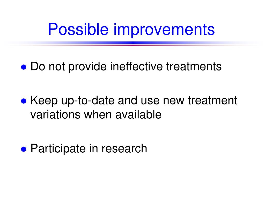 Possible improvements • Do not provide ineffective treatments • Keep up-to-date and use new treatment variations when available • Participate in research