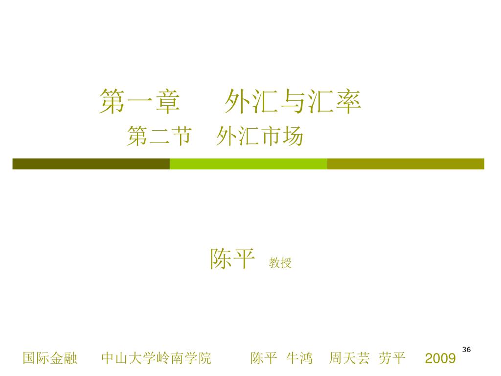 第一章 外汇与汇率第二节 外汇市场 陈平教授 国际金融 中山大学岭南学院 陈平 牛鸿 周天芸 劳平 2009