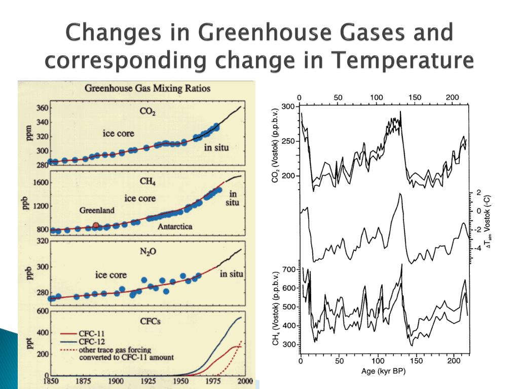 Changes in Greenhouse Gases and corresponding change in Temperature