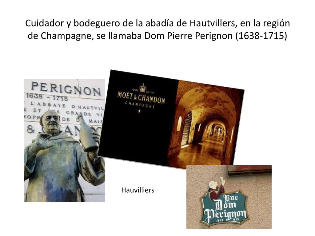 Cuidador y bodeguero de la abadía de Hautvillers, en la región de Champagne, se llamaba Dom Pierre Perignon (1638-1715) Hauvilliers