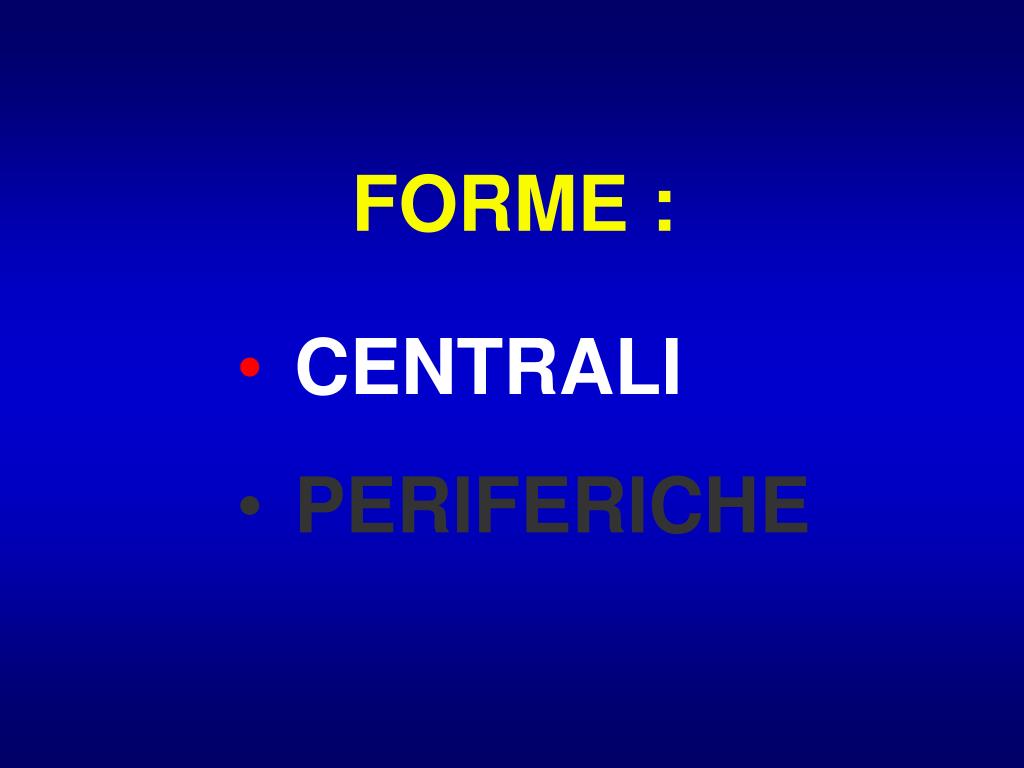 NEOPLASIE FORME : • CENTRALI • PERIFERICHE