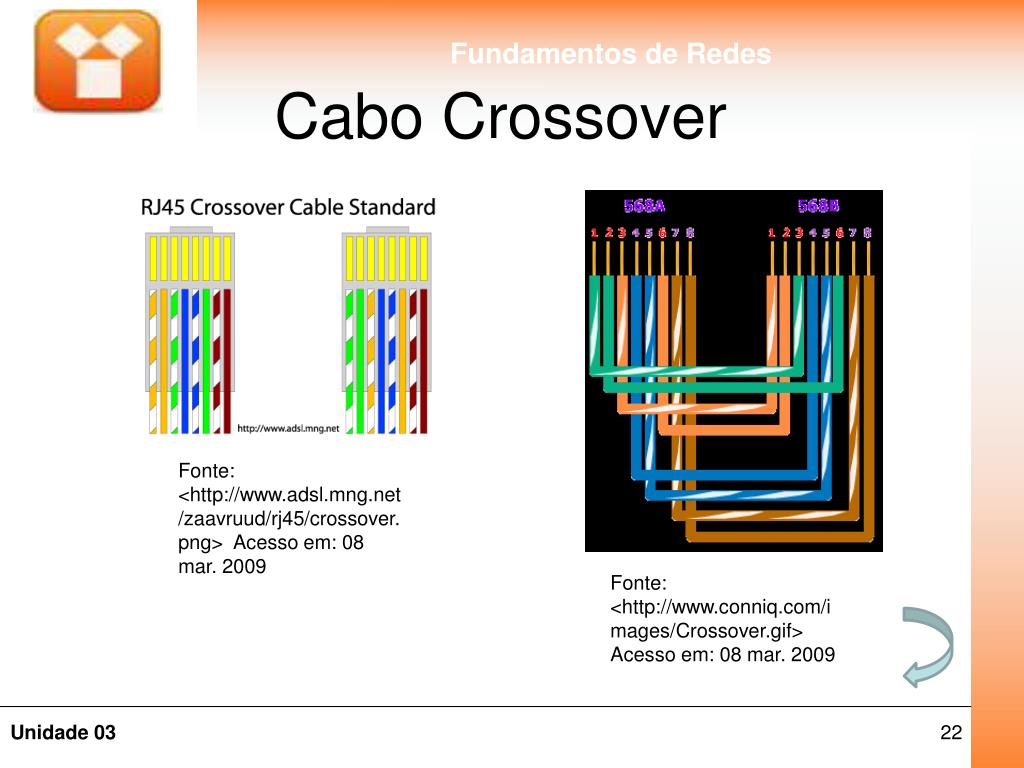 Cabo Crossover Fonte: <http://www.adsl.mng.net/zaavruud/rj45/crossover.png> Acesso em: 08 mar. 2009 Fonte: <http://www.conniq.com/images/Crossover.gif> Acesso em: 08 mar. 2009