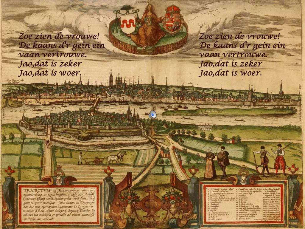 Dee geine witte rok aon heet Deit neet mèt,deit neet mèt Dee geine witte rok aon heet Deit neet mèt! Links (6) de aw Martinuskèrrek.Op de Maos de meulesjepe boe graon gemaole kòs weure, es Mestreech belegerd woort.Ze woorte veur 't iers gebruuk in 1407/1408.